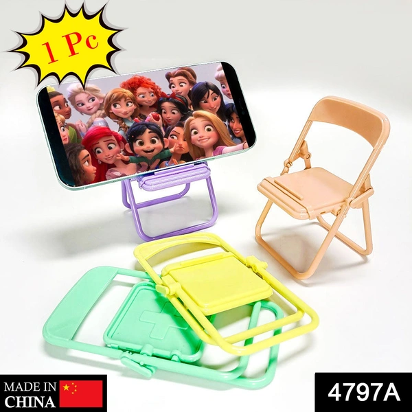 4797 1 Pc Chair Mobile Stand used in all kinds of household and official purposes as a stand and holder for mobiles and smartphones etc. Its design is very ease going and very handy in order to use it clearly without any problem or facing any disadvantage. It is made under the consideration of users concern, which makes this product safe while using it. You can use it everywhere just because of its small size and ongoing mobility and take it to everyplace, where you want to use it for your needy purposes. This mobile Chair is very handy and light weighted so it basically doesnt need any extra hand to control or manage it and thats is why, this furthermore makes it a worthy material.