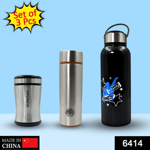 6414 Double Wall Vacuum Insulated Stainless Steel Hot & Cold Flask Water Bottle - Pack of 3, Size: 250 ml, 350 ml & 450 ml (Multicolor)