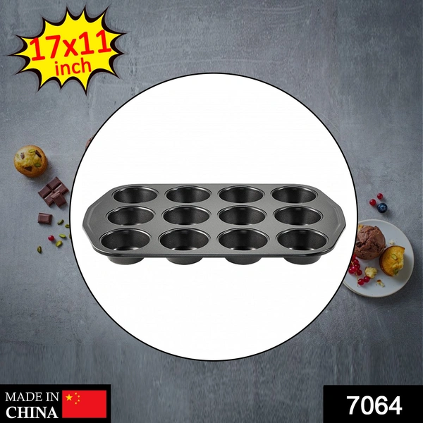 7064 Non-Stick Carbon Steel 12-Cup Muffin Pan Midi Shape Muffins, Cupcake Mold (17X11 Inch)