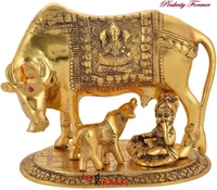 Pinkcity Forever Brass Murti Kamdhenu Cow & Calf | Nandi Cow Decorative Showpiece - 16 cm