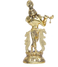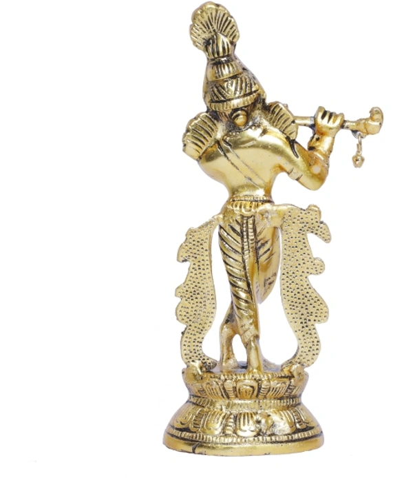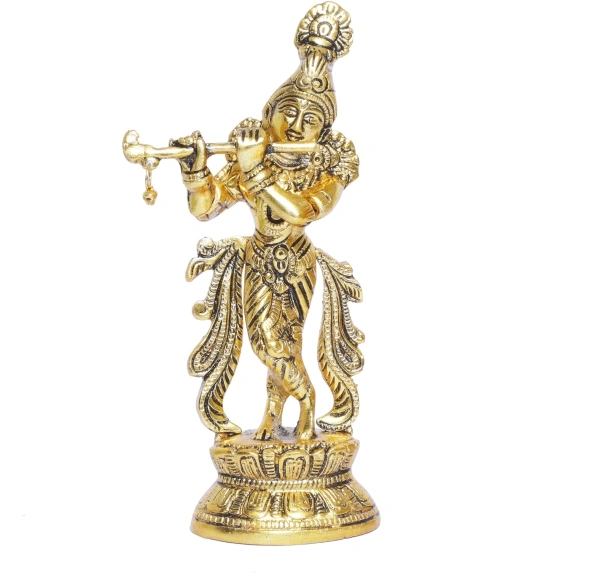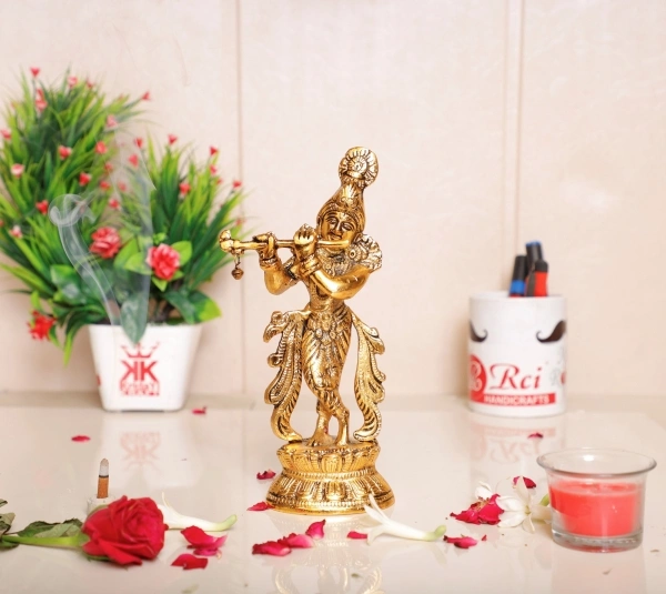KridayKraft Lord Krishna Metal Statue,Krishna Murti Playing Flute for Puja Room & Decor your Home,Office & Gift Your Relatives on Diwali,Wedding,Birthday,Gift Article,Return gift...Brass Color Decorative Showpiece - 23 cm