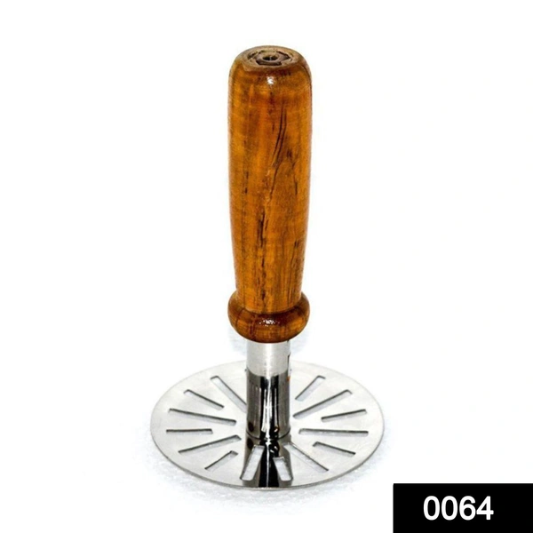 0064 Stainless Steel Potato Masher, Pav Bhaji Masher with wooden handle