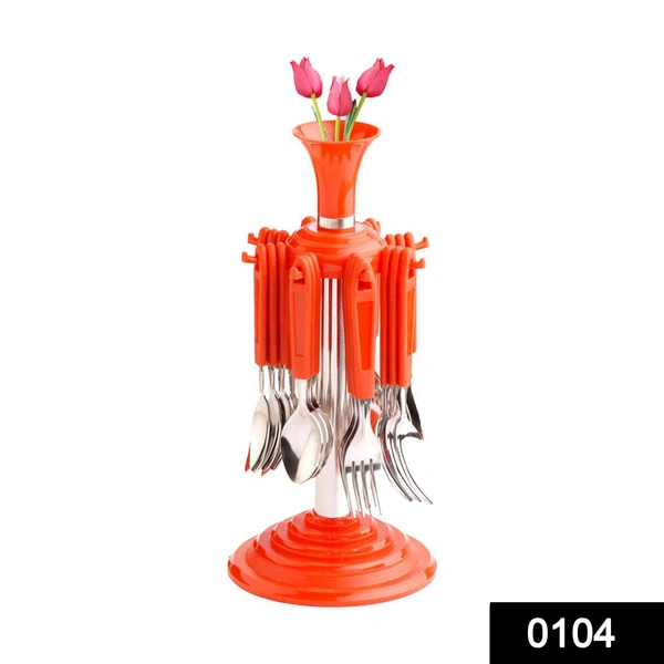 Kitchen Cutlery Serving Set with Revolving Stand Made from Stainless Steel & ABS Plastic (24 Pcs)