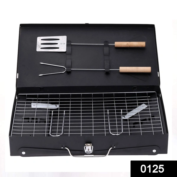 0125 Stainless Steel Briefcase Style Barbecue Grill Toaster (Medium, Black)
