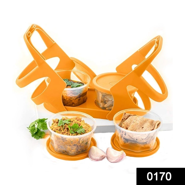 0170 Lunch Box (200 ml each Container) with Attractive Stand - 4 pcs