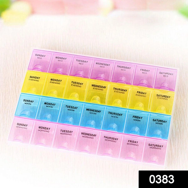 0383 Pill Case- 4 Row 28 Squares Weekly 7 Days Tablet Box Holder Medicine Storage Organizer Container