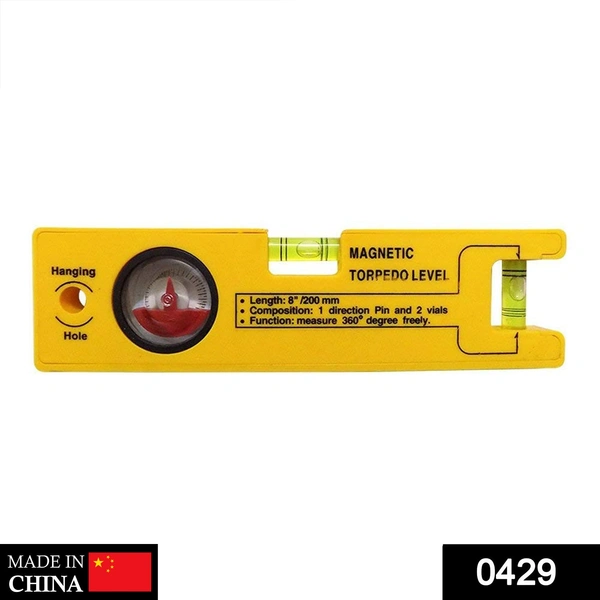 0429 8-inch Magnetic Torpedo Level with 1 Direction Pin, 2 Vials and 360 Degree View