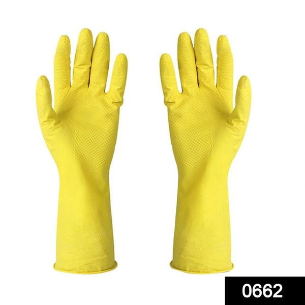 662 - Flock line Reusable Rubber Hand Gloves (Yellow 2 tone) - 1pc