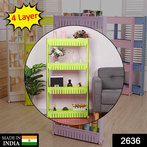 2636 4 Layer Storage Organiser Slim Rack Shelf with Wheel