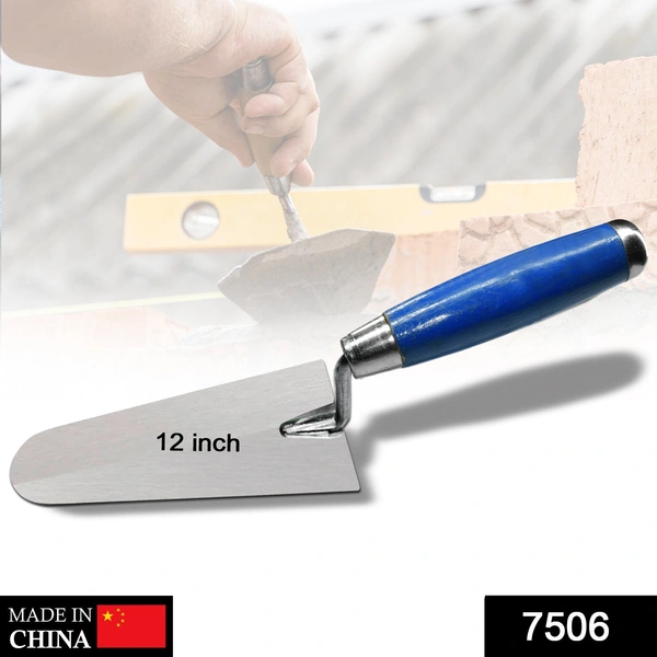 Bricklayer's trowel has an elongated triangular-shaped flat metal blade, used by masons for leveling, spreading, and shaping cement, plaster, and mortar.